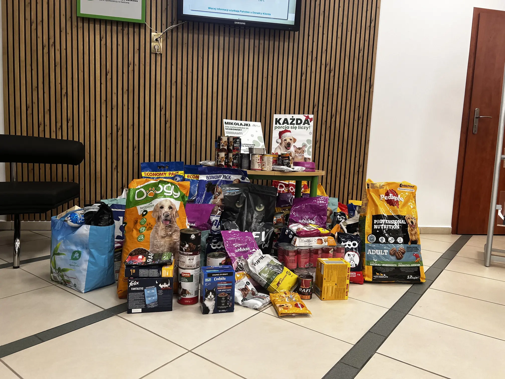 Zbiórka karmy w ramach naszej Mikołajkowej Akcji właśnie się zakończyła. I musimy to powiedzieć wprost – odzew przeszedł nasze oczekiwania. Zebraliśmy naprawdę ogromną ilość karmy, która już realnie pomaga tam, gdzie była najbardziej potrzebna.